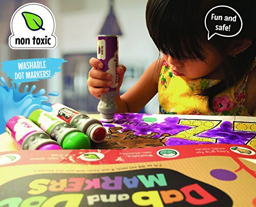 LIMITED TIME SALE : Add 52 pages ABC Activity book for $2 use code ALPHABET. CREATED WITH YOUR CHILD IN MIND! Our Dab and Dot Markers have a simple twist-off cap, 8 colors and an "easy grip" feature built in compare to other dauber markers. The reinforced tip won't dry out and is built to withstand dabs, dots and doodles - perfect for little fingers and BIG imaginations!