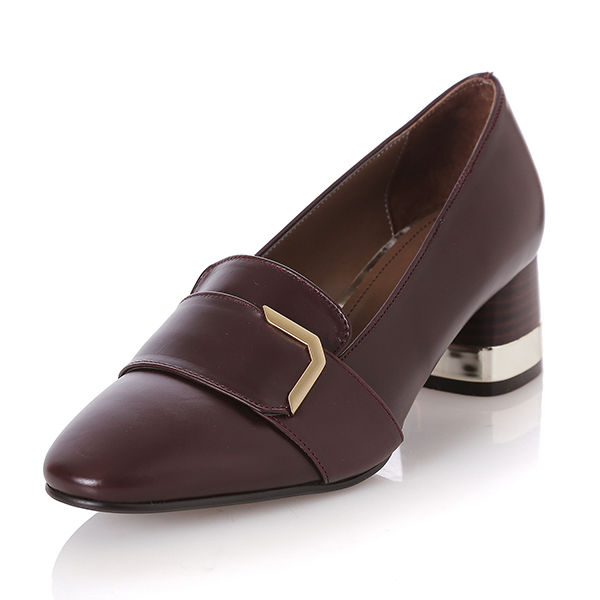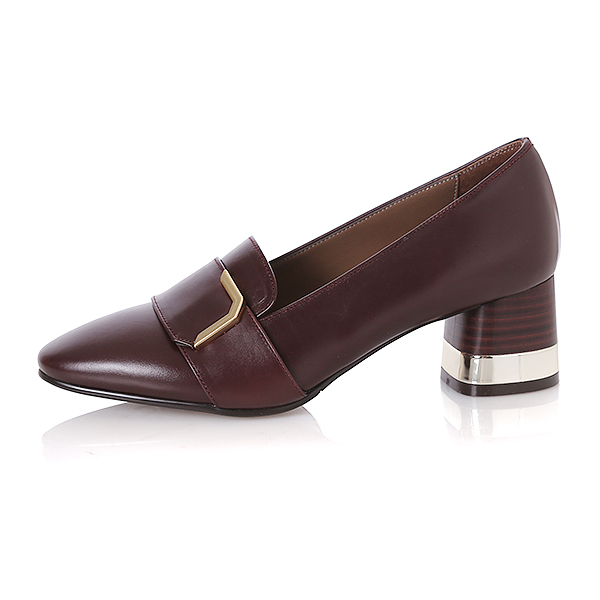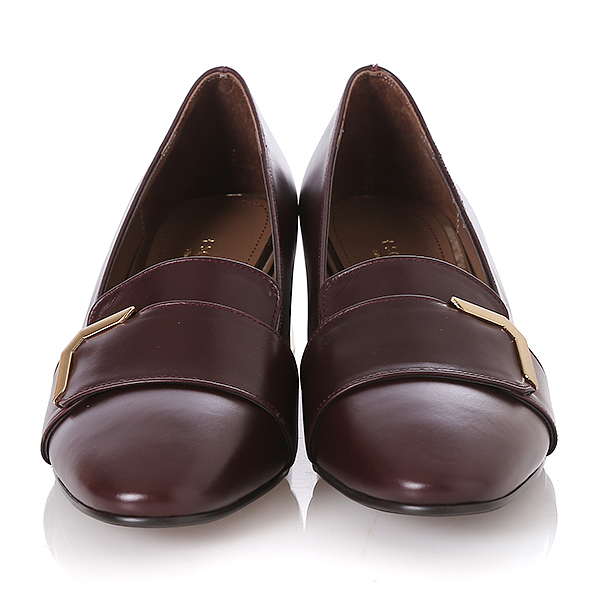 심플한 메탈장식과 플레어 스타일로 퍼져나가는 굽모양의 장식이 트렌드하면서 모던한 이미지를 연출 시킴. 모공이 잘 느껴지지 않은 고급스러운 원피를 활용하여 퀄리티를 높인 상품.