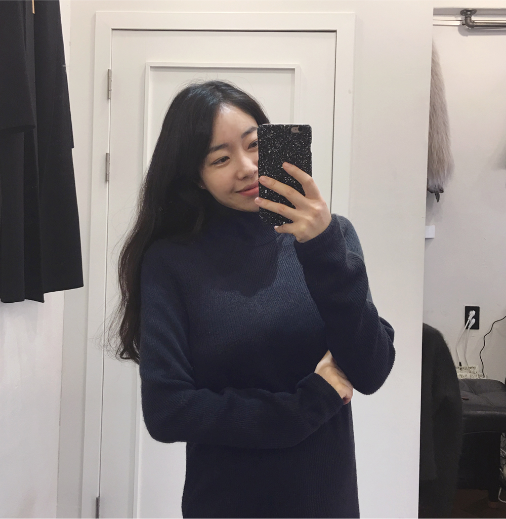 답답하지 않고 톡톡하게 올라온 반폴라넥이 보온성을 잡아주면서.