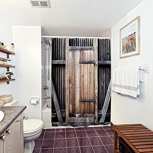 Enipate Barn Door Shower Curtain Rustic Shower Curtain Digital Printing With Hooks, 71W x 71L Inches