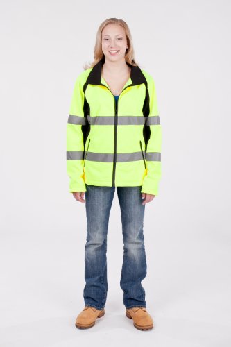 Utility Pro UHV668 Polyester High-Vis Ladies Full-Zip Soft Shell Jacket with Dupont Teflon fabric protector, Yellow, Medium