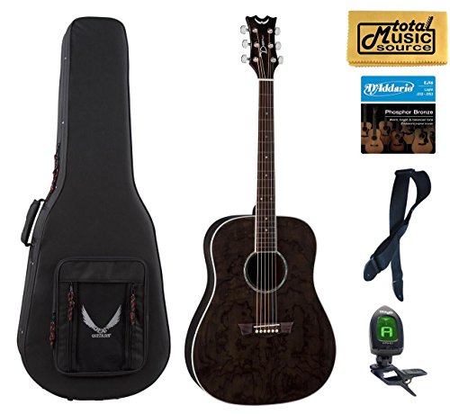 Studio : Dean Guitars Publisher : Dean Guitars Product Description The Dean AXS Dread Quilt Acoustic Guitar is an affordable steel-string with a full sound and some amazing looking wood. It features a dreadnought-size body made of quilt ash, with a top that really shows off this tonewood's exquisite grain, all highlighted by 3-ply body binding. The guitar is full-scale with a set mahognay neck and a comfortable "C" shape with rosewood fingerboard. Die-cast tuners make tuning a snap. Specs: Item ID - AX DQA TBK Model Name - AXS Dread Quilt Ash - Trans Black Dexterity - Right Handed Top Material - Quilt Ash Top Contour - Flat Top Neck Material - Mahogany Scale Length - 25 1/2" (648mm) Construction - Set Neck Neck Shape - C Fretboard Material - Rosewood Inlays - Abalone Dot # of Frets - 20 Fretboard Radius - 14" (356mm) Nut - PPS (Polyphenylene Sulfide) Nut Width - 1 11/16" (43mm) Tuners - Sealed Die Cast Hardware Color - Chrome Bridge - Rosewood Binding - 3 Ply W/B/W Finish - Trans Black Country of Origin - China Truss Rod - Dual Action Strings - D'Addario EXP11 (.012-.053) 0
