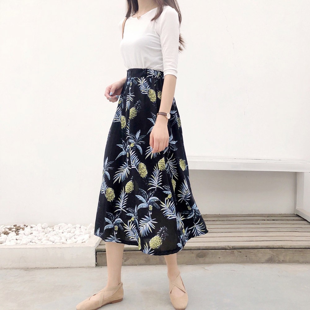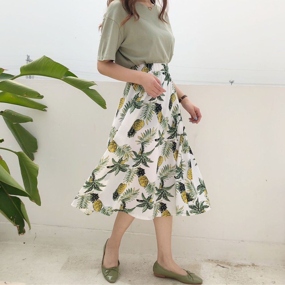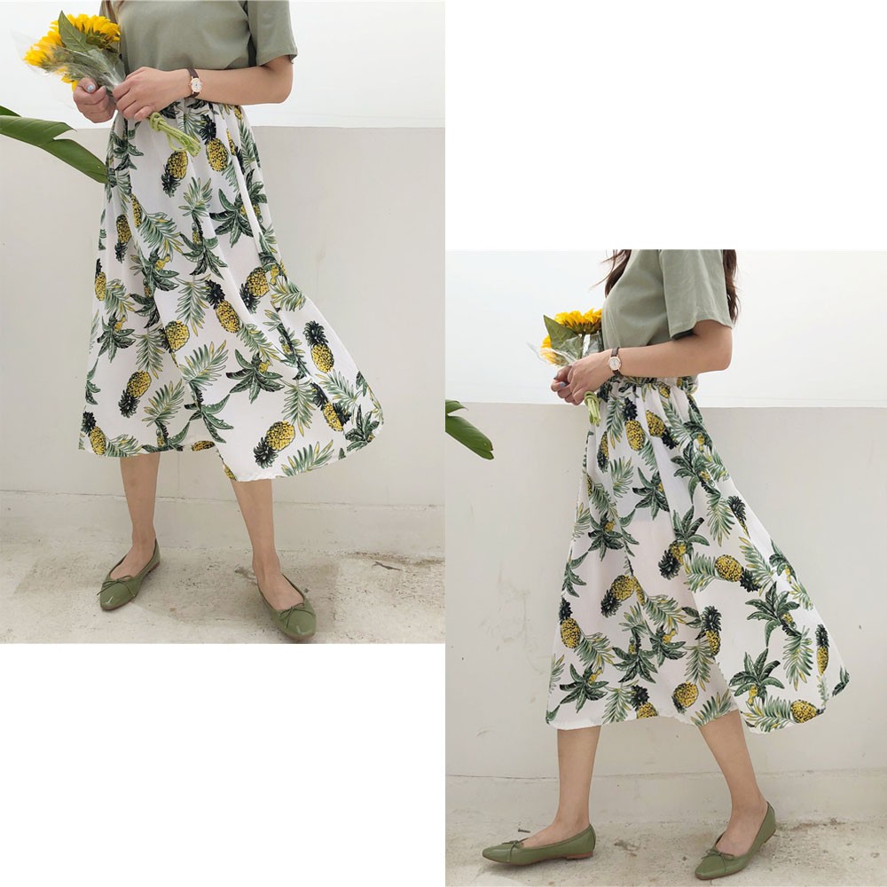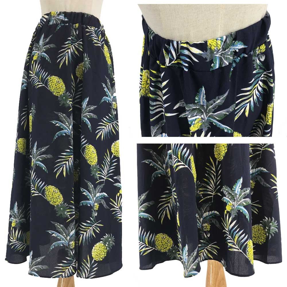 ウエストがゴムなので快適に着用できる。オフィスや仕事、通勤、デートなどでも様々な場面で活躍できる着まわし抜群のスカート