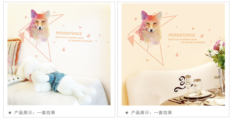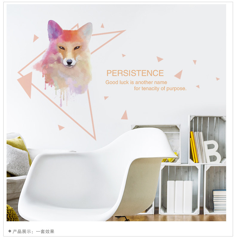 创意墙贴纸卧室客厅餐厅墙壁装饰品简约现代水彩北极狐动物贴画