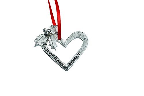 Features a Rustic Hanging Heart Which Hangs From a Red Ribbon with a Cast Holly in The Left Hand Corner. The text is hand stamped so no piece is the same.