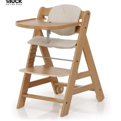 ReleaseDate : 2014-04-01 Studio : Hauck Publisher : Hauck Binding : Baby Product Product Description The new hauck beta chair shares a similar classic design to the hauck alpha chair but with two major updates. First, the beta chair comes standard with a removable wooden high chair tray and the second new feature is the all new anti-tip wheels. The wheels ensure that the chair will simply roll back if a child tries to put their feet up and push off of a table. Leave it to German engineering to design the safest chair that will grow with your child from toddler to teen. The most well thought out chair in it's class. Product features made from solid German beech wood? tested to 100 pounds? finished in natural wood? width: 19 inches? height: 31.5 inches? depth: 22 inches? four year warranty product specifications1. Height adjustable wooden foot rest2. Height adjustable wooden seat3. Crotch strap and five point harness4. Hauck high chair seat pad5. Seat pad included6. Wooden tray included 0