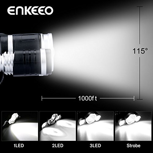 4 LIGHTING MODES: with 4 different light modes(middle light, side lights, 3 lights and flash lighting mode), ensures great visual quality and easily adapts to diverse situations; perfect for biking, camping, hiking, fishing, reading