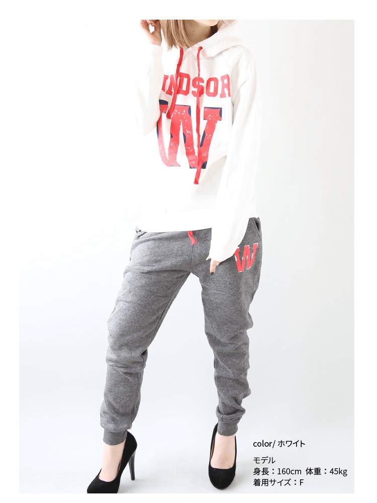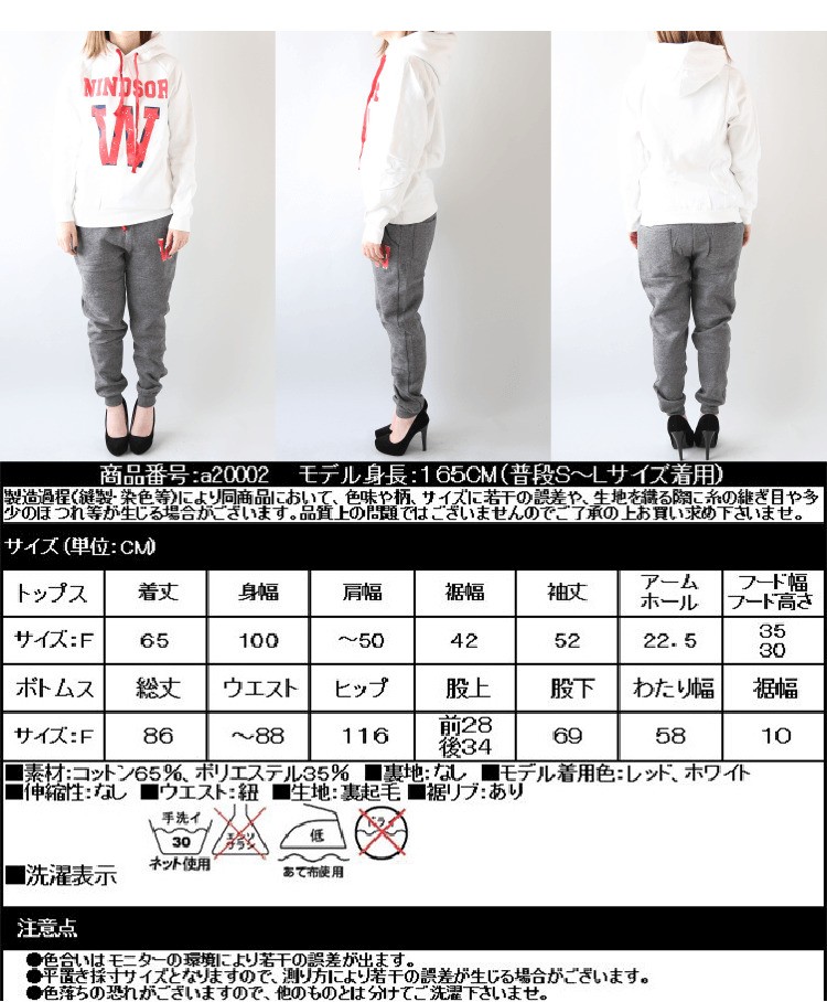 ボトムス 総丈:約86cm <br> ウエスト:約~88cm <br> ヒップ:約106cm<br> 股上:約前28、後34cm <br> 股下:約69cm<br> 裾幅:約10cm<br> わたり幅:約58cm<br> |