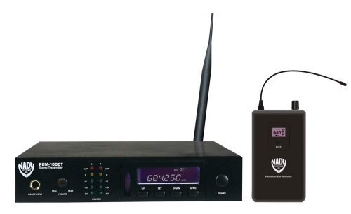 -. Brand : Nady -. EAN : 0613815594772 -. Feature : Nady PEM-1000 Wireless In-Ear Monitoring System / 100 selectable UHF frequencies for interference-free performance (Up to 8 systems can operate simultaneously) / System consists of one PEM-1000T transmitter and one PEM-1000R body pack receiver. (Unlimited additional PEM-1000R receivers can operate with the same transmitter) / Easy setup and use with either automatic Auto scan or manual open-frequency selection, and ASCTM infrared synchronization of selected channel between transmitter and receivers / Rugged, all-metal half-rack transmitter. Rack mountable singly or side-by-side with optional rack kits. -. Label : NADY -. Manufacturer : NADY -. Model : PEM-1000 -. MPN : PEM-1000 -. PackageQuantity : 1 -. PartNumber : PEM-1000 -. ProductGroup : Musical Instruments -. ProductTypeName : SOUND_AND_RECORDING_EQUIPMENT -. Publisher : NADY -. Studio : NADY -. Title : Nady PEM-1000 Wireless In-Ear Monitoring System With 100 Selectable UHF Channels And Auto Scan -. UPC : 613815594772