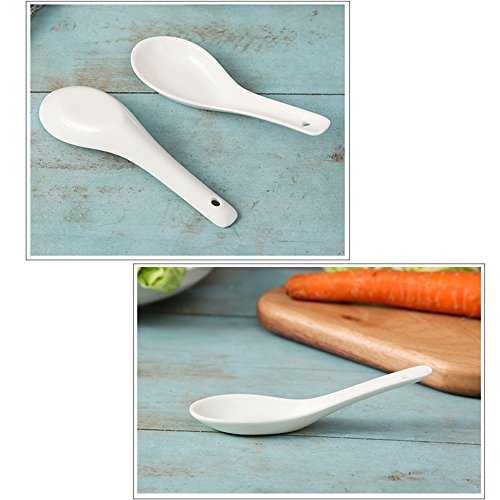 Etmact 12pcs White Ceramic Spoons Chinese Porcelain Soup Spoons Won Ton Soup Spoon