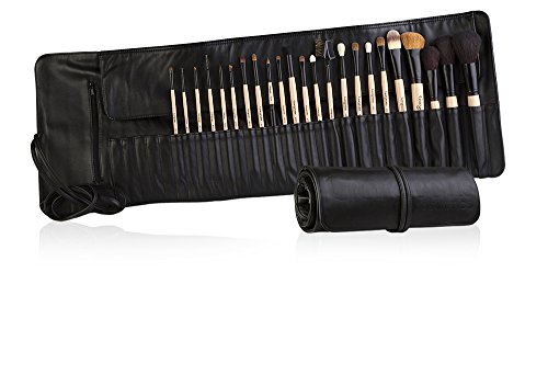 Gorgeous Cosmetics Makeup Brush Set, 23 Brushes, Natural And Synthetic Hair, Black Leather-Look Wrap
