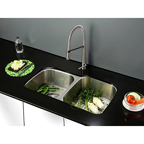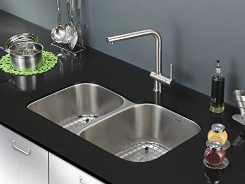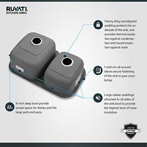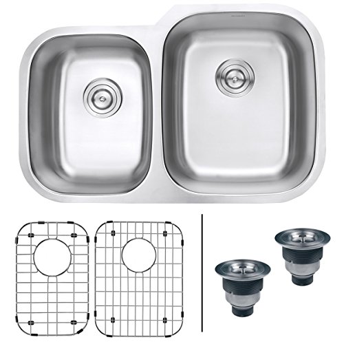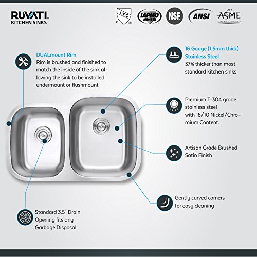 Ruvati RVM4315 Undermount 16 Gauge 32" Kitchen Sink Double Bowl, Stainless Steel