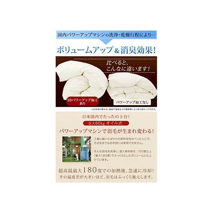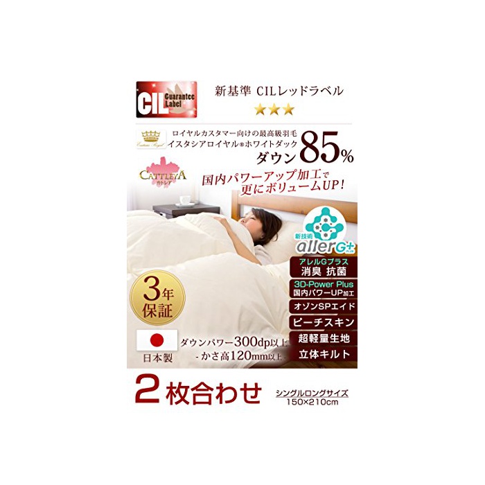 【일본제】【3년 보증】【CIL레드 라벨 ★★★】【화이트 덕 다운85%】【인지(든가) 고120mm이상,다운 파워300dp이상】【2 매합해】【국내 파워 업 가공】【신기술 그 것《루》G플러스에 소취 항균】【제균방취방 다《니》방 곰팡이 오존 스페셜 aid 가공】【피치 스킨 가공으로 매끄러운 촉감】【깃털이 빠져나오하며를 방지하는 다운 프르프 가공】【초경량 원단】【입체 퀼트】