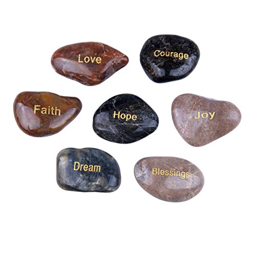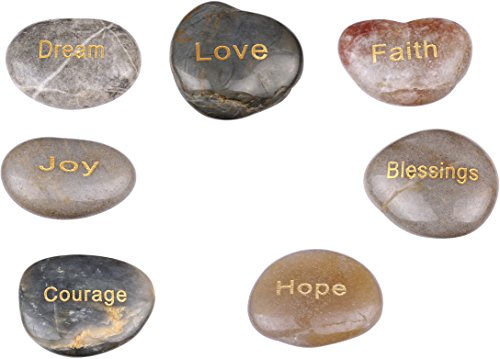 - River stones made with engraving and not glued printed words or etched