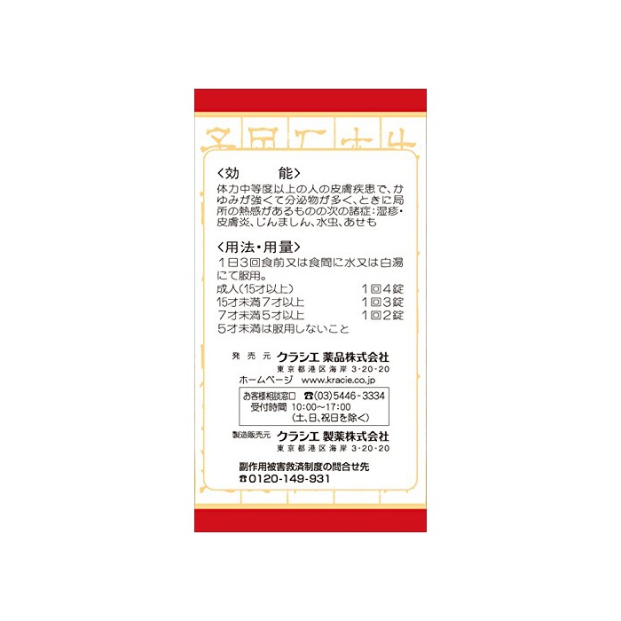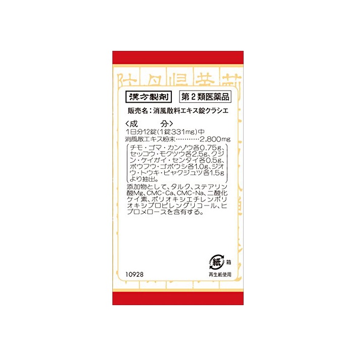 원본상품명: 【第2類??品】消風散料エキス錠クラシエ 180錠