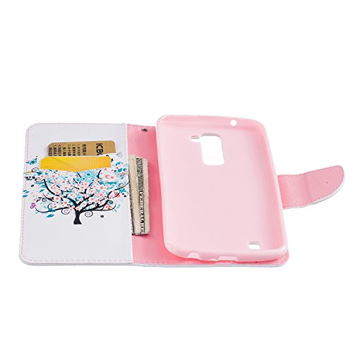 LG K10 Case,LG K10 Cover,ikasus Colorful Painted Premium PU Leather Fold Wallet Pouch Case Flip Stand Credit Card ID Holders Case Cover for LG K10,Butterfly Flower Cherry Trees