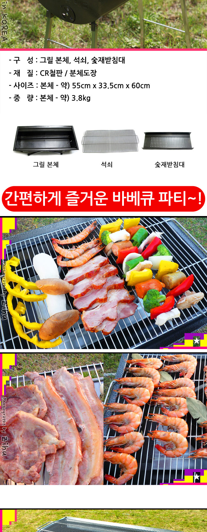 - 제품 구성그릴본체,석쇠,숯재받침대
