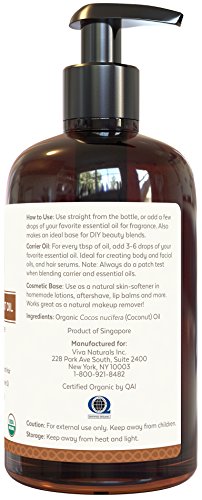 Viva Naturals Fractionated Coconut Oil - Organic Massage Oil, Perfect Carrier for Essential Oils (10 oz)