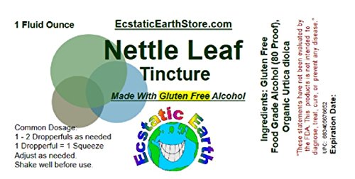 Studio : Ecstatic Earth Publisher : Ecstatic Earth Binding : Health and Beauty Product Description Our fresh Nettle Leaf Tincture is made with 100% Organic Nettle Leaf and Gluten Free alcohol. It has been allowed to cold cure for at least 6 weeks to ensure maximum strength. About Ecstatic Earth Ecstatic Earth is a small green friendly company focused on providing our customers with the highest quality organic and/or wild crafted products available! Tinctures come in a light resistant, amber colored bottle and are sealed with a tamper preventive seal. We generally ship via the U.S. Postal Service and all items are sent with tracking information (this information will be sent via e-mail by amazon.com on the date of shipment).