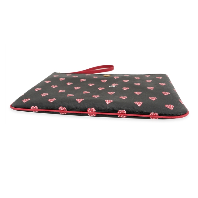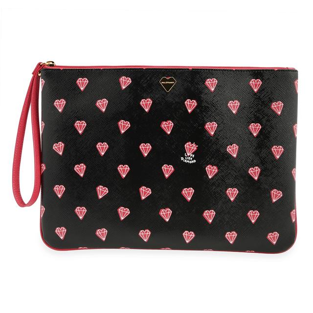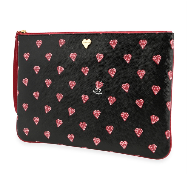 전면에 하트를 적용한 다이아 몬드 패턴의 클러치백입니다.