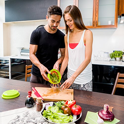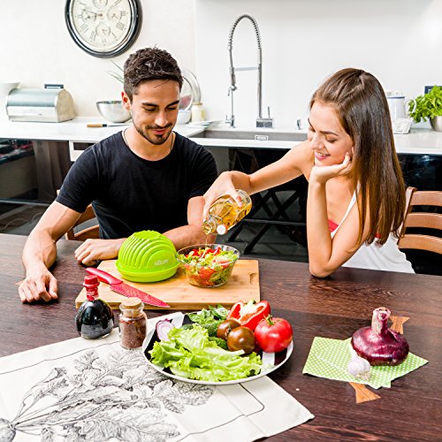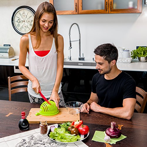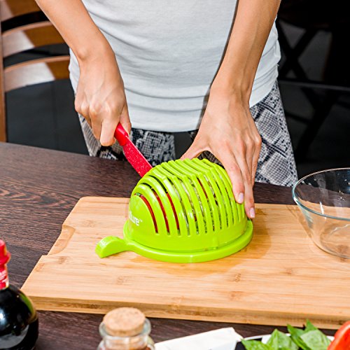 1.2L FAMILY SIZED SALAD CUTTER BOWL MAKES A VEGGIE PACKED 5 CUP SALAD in JUST 30 SECONDS ? Of course you’ve likely done your research so you know this is not the only salad cutter bowl on the market, and we’d only suggest you only click add to cart now if you: Plan on Using It for a Lifetime: As the makers of restaurant quality kitchen tools professional chefs love, we take pride in our craftsmanship and back up every purchase you make with a 100% money back guarantee ? for LIFE. Need a Salad Cutting Bowl that Stands Up to Premium Knives ? Without Dulling Your Blades: If you’re obsessed with having the best quality items in your kitchen, then you’ll love how this salad bowl cutter is TOUGH ENOUGH to stand up to knives without knicks, yet gentle enough on to leave your knife blades in razor-sharp condition. Love Easy Prep and Easier Cleanup ? Because It’s Dishwasher Safe: What’s the point of using a single tool to make your entire dinner if you have to spend all night worrying about how you’re going to clean it? That’s why we engineered this salad cutting system in 2 pieces ? a bottom cutting board, and a top colander strainer with slicing grooves ? so you can slice, slice, then toss it in the dishwasher the moment you’re done. ENGINEERED BY THE BEST ? TRY IT 100% RISK FREE: At Allure Kitchenware we like to say we, “Let the products do the talking…”, and we guarantee you’ll feel 100% convinced that this is the BEST PREMIUM SALAD CUTTER BOWL SET on the market ? from the first moment you use it, and everytime there after, or your money back. So click add to cart now with complete confidence, then send us your beautiful salad pictures ? we can’t wait to see what you create! 0 |