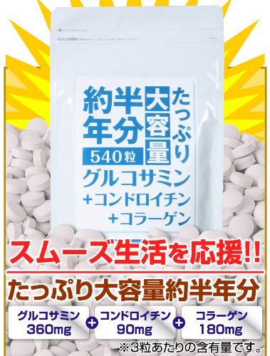 商品名:[約半年分たっぷり大容量グルコサミン+コンドロイチン+コラーゲン540粒] が