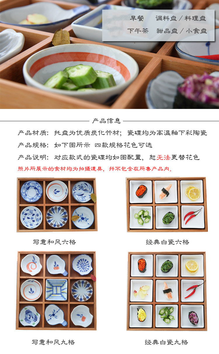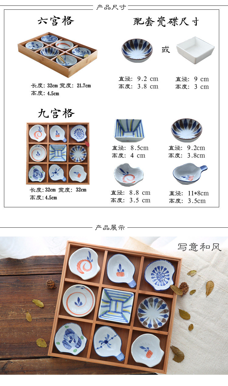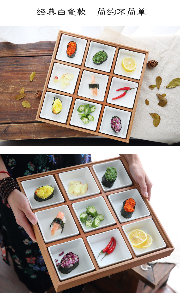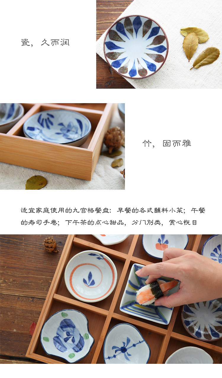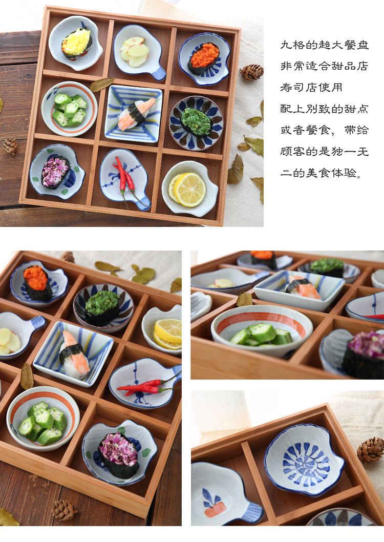 日式和风陶瓷竹木果盘干果盘九宫格甜品盘寿司盘餐盘蘸料碟调味碟