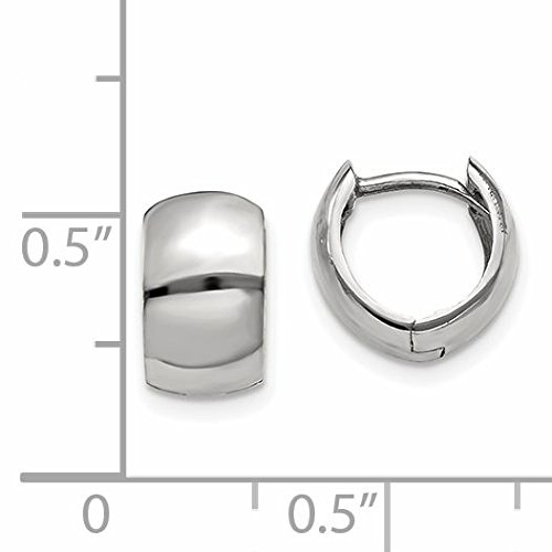 SPECIFICATIONS: Jewelry Type: Earrings, Earring Type: Hinged / Huggie, Material: Primary: Gold, Material: Primary - Color: White, Material: Primary - Purity: 14K, Length of Item: 7mm, Width of Item: 6mm, Sold By Unit: Pair, Plating: Rhodium, Charm/Element Length: 10mm, Charm/Element Width: 10mm, Earring Closure: Hinged