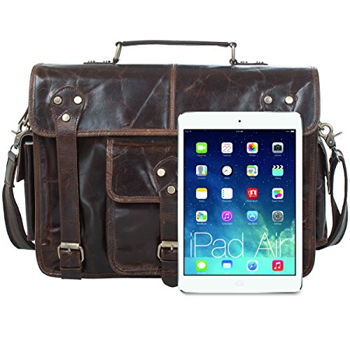 - Feature : Materials:Top quality Genuine leather. / Dimensions:11(H)*15(L)*4.9(W)inch. / Multiple pockets convenient organize your items. / Fit up to 14"Macbook,iPad and A4 Book. / Adjustable shoulder strap(28.8-54.2inch)
