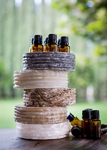 Chiseled Round Essential Oil Holder Case - 100% Hand Carved Onyx Stone - 7 Slots for 15ml Bottles - Decorative Storage and Display (Creamy Tan)