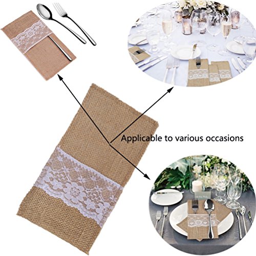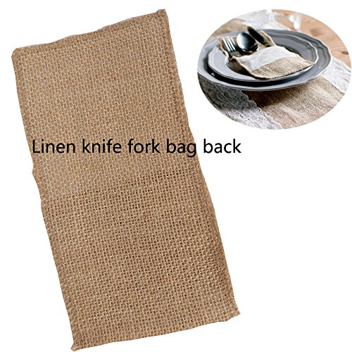 Arlai Pack of 10 Natural Burlap Utensil Holders Knifes Forks Bag Cutlery Pouch 4 x 8 Inch Vintage Wedding Decor