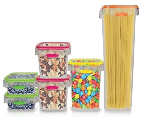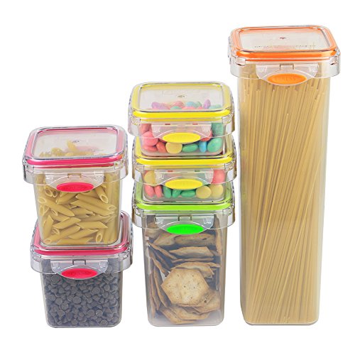 Set of 6 - Airtight Plastic Storage Canister Set, Food Saver Container w/ Leak-Proof Lid