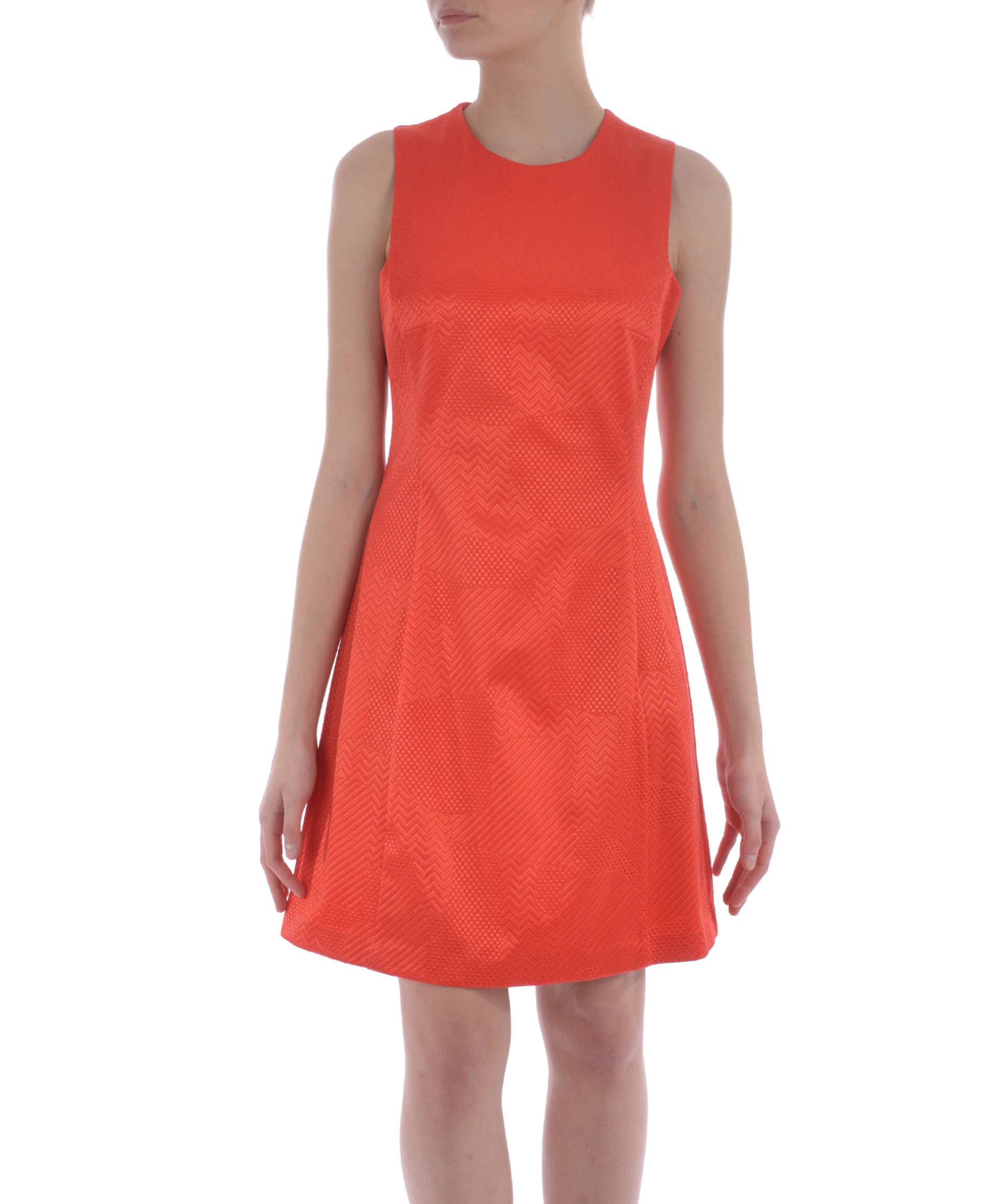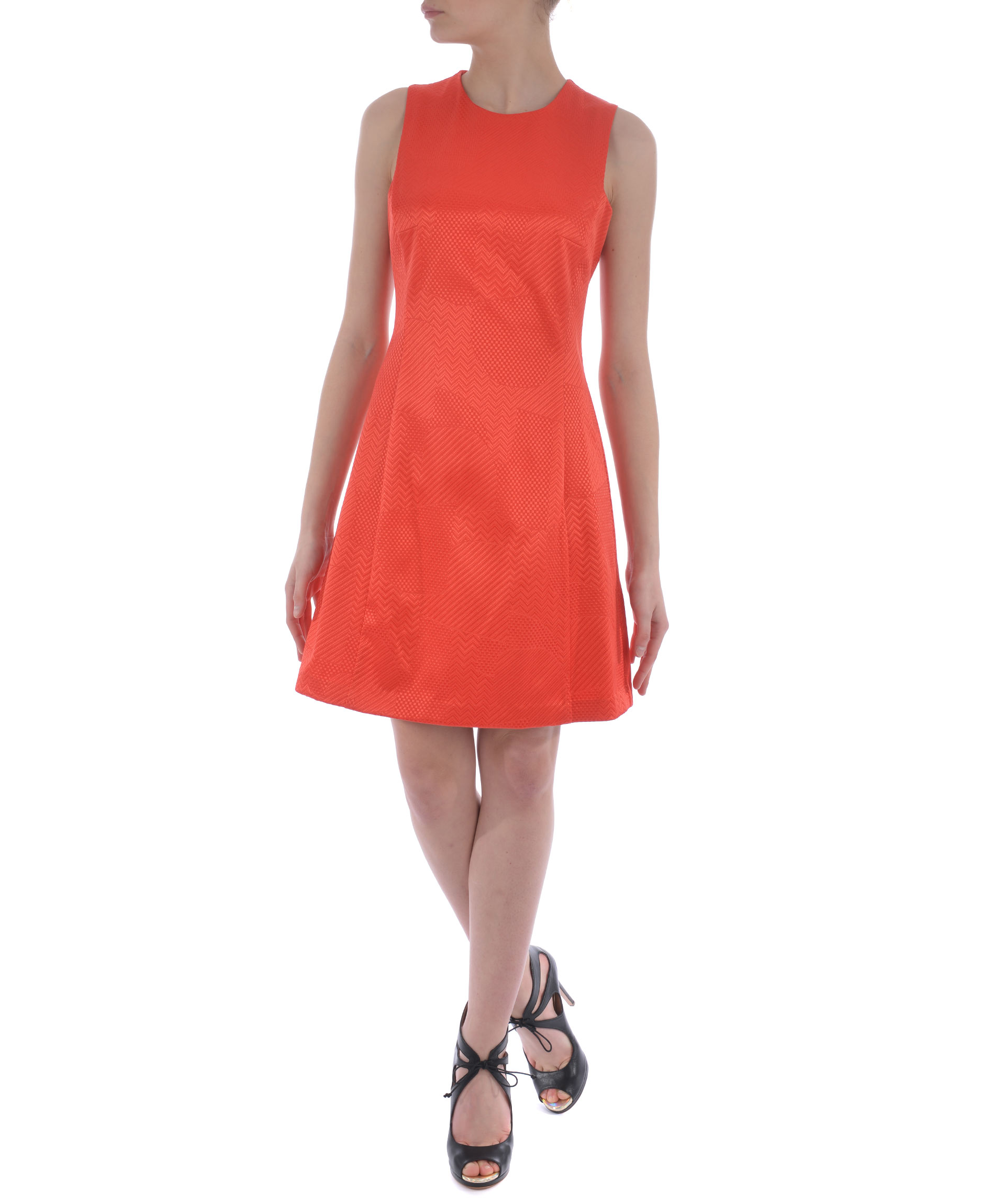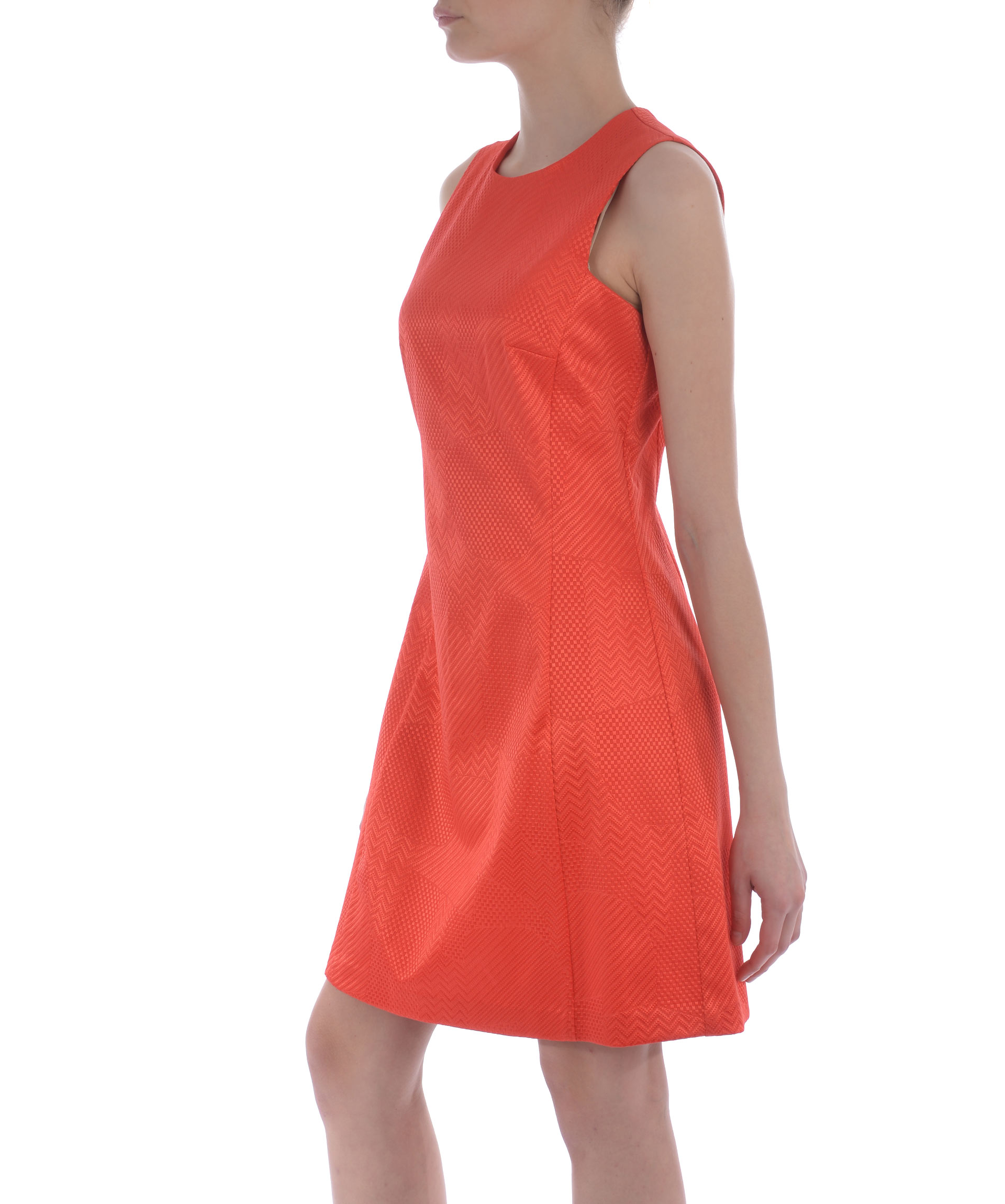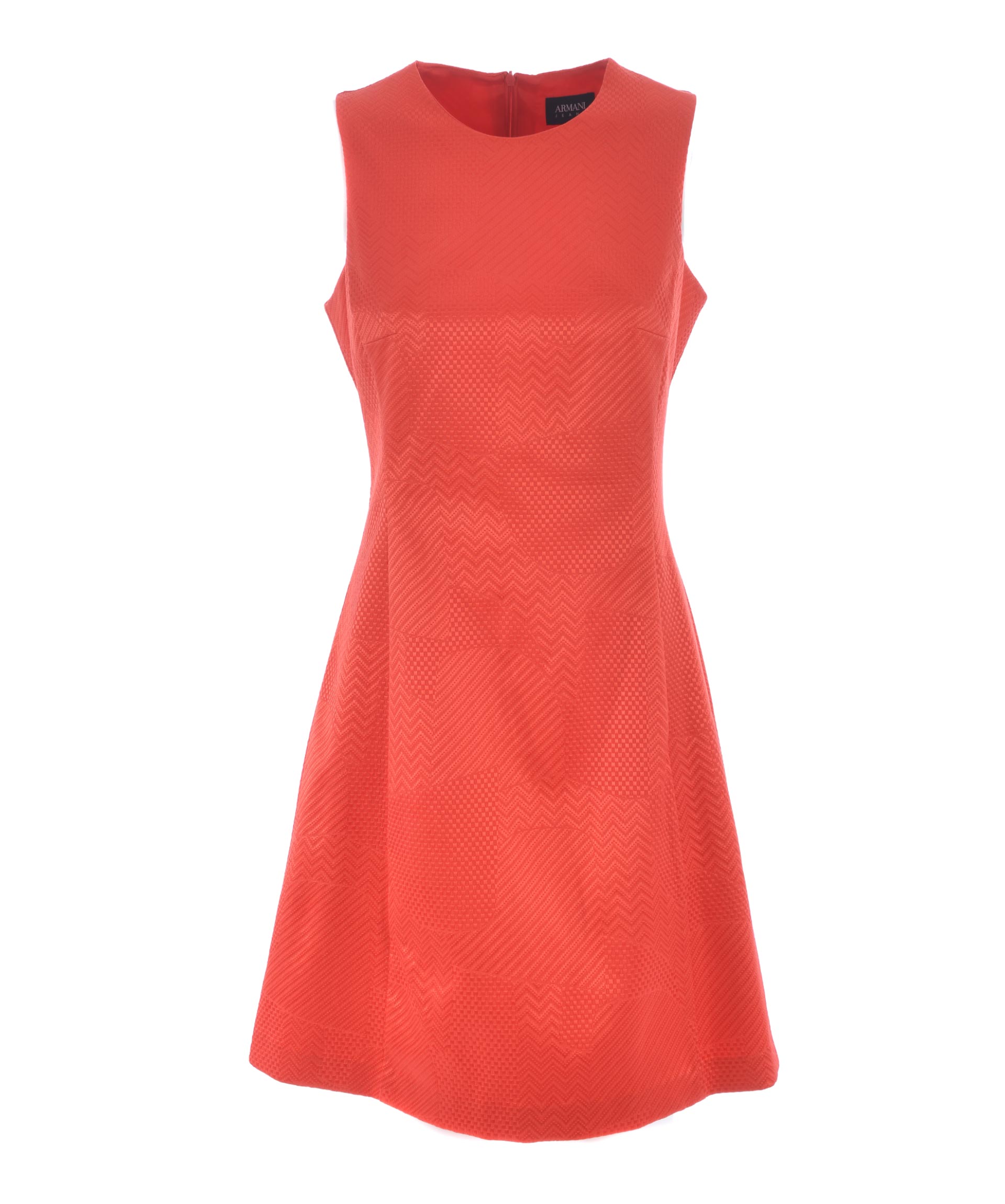 Abito Armani Jeans in jacquard di misto cotone Rosso corallo. Girocollo. Giromanica. Svasato al fondo. Chiusura sul retro con zip a scomparsa. Foderato. Misura in foto 42 53% cotone, 44% poliestere, 3% elastene Fodera: 62% acetato, 38% poliestere