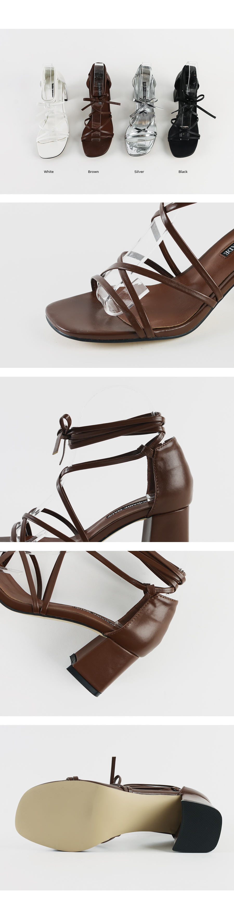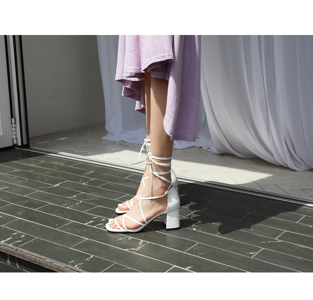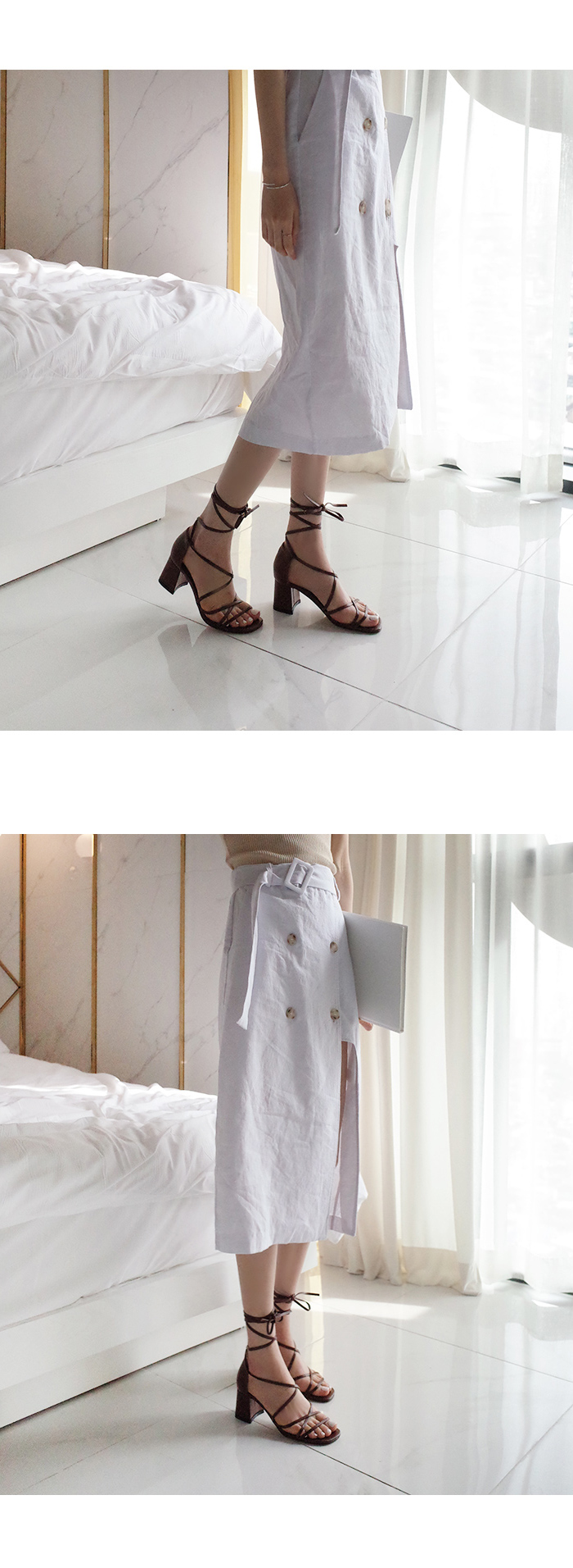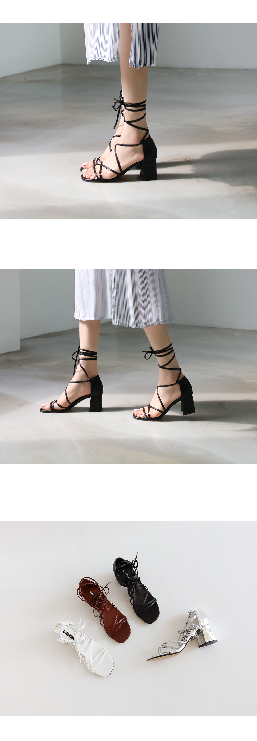 긴 스트랩을 칭칭감아 연출하는 디자인으로 어떻게 매듭을 지어주냐에 따라 다양한 무드가 연출되겠죠? 미들타입의 굽높이로 제작했어요 여름시즌 휴양지코디에 적격인 디자인이기 때문에 활동성 또한 갖춰야했기 때문에, 최대한 편안하게 제작했어요!