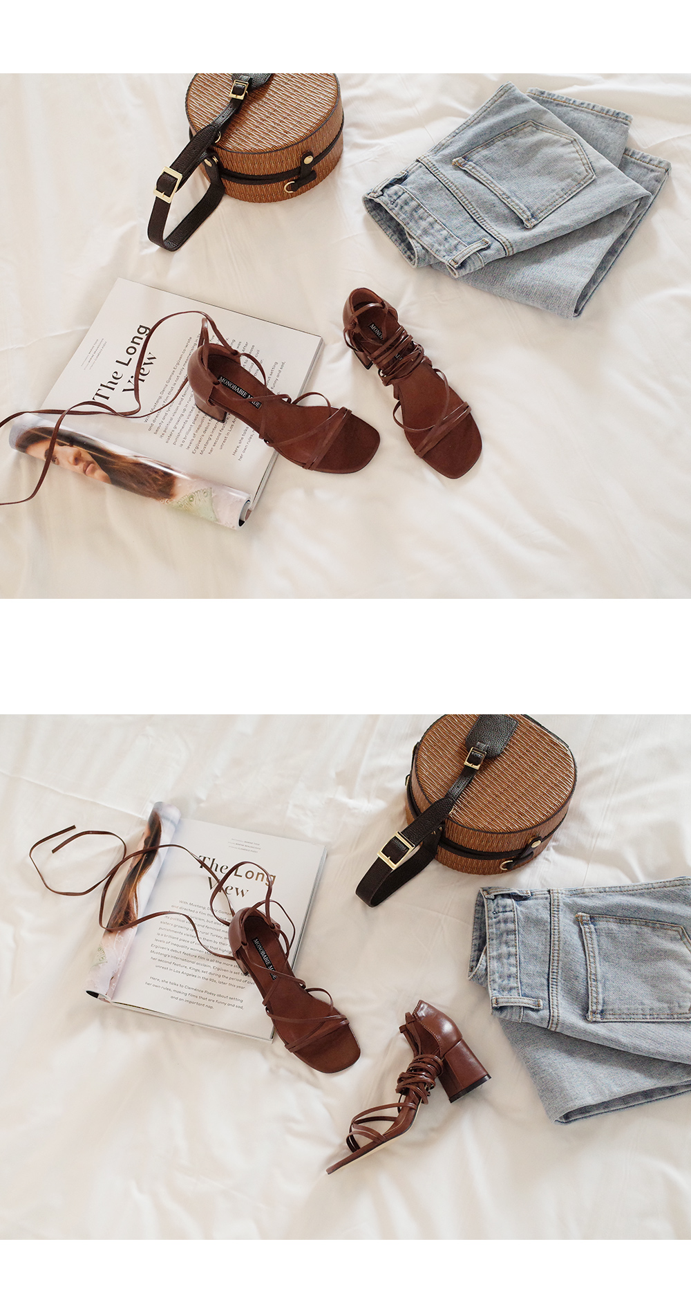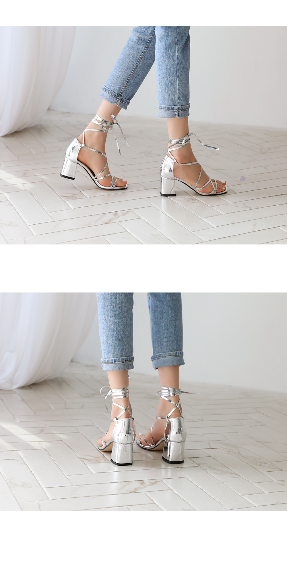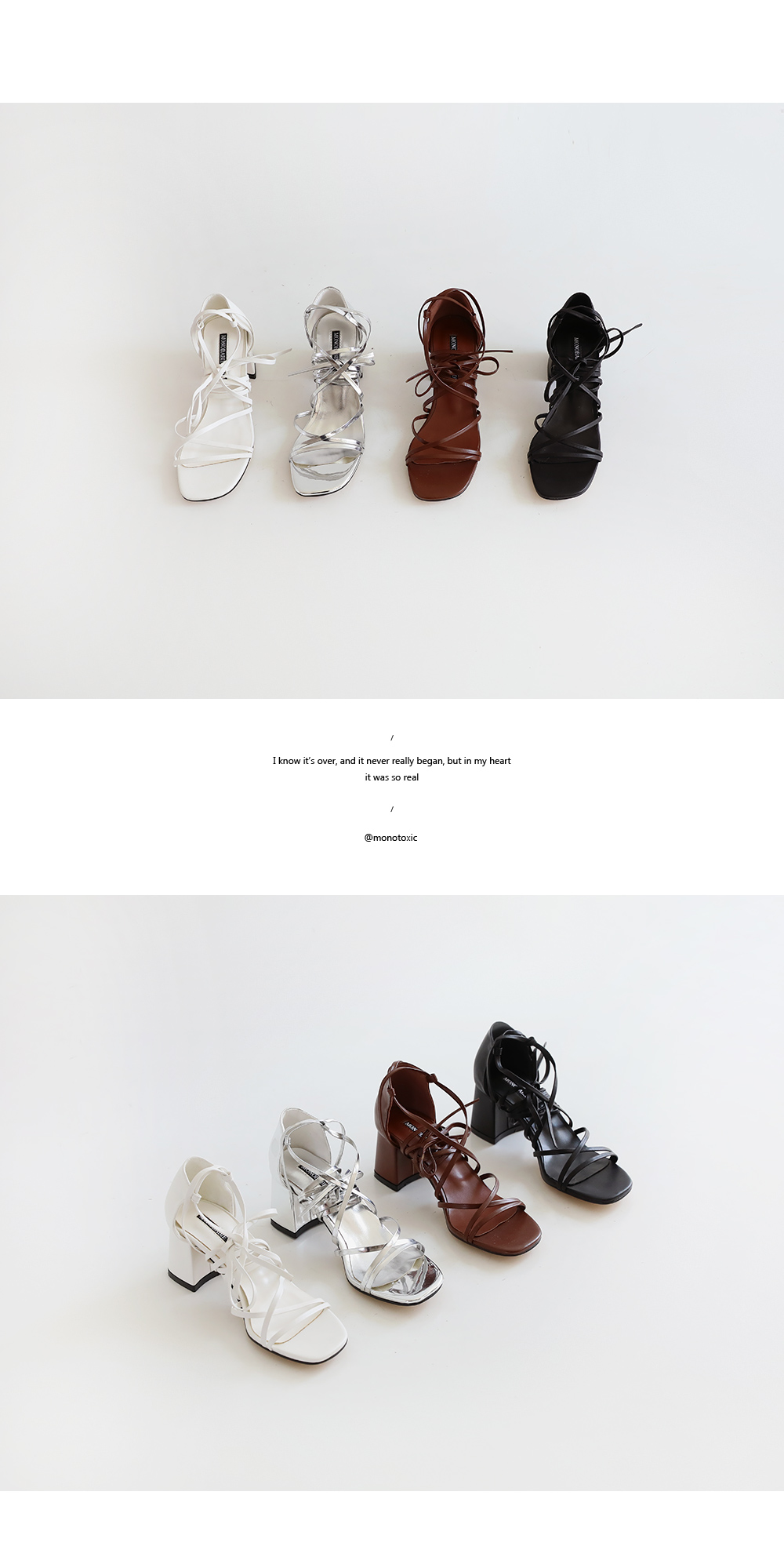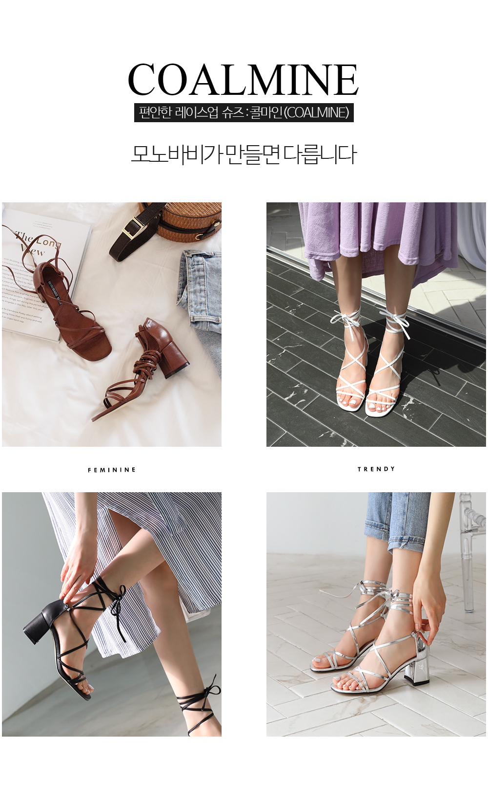 긴 스트랩을 칭칭감아 연출하는 디자인으로 어떻게 매듭을 지어주냐에 따라 다양한 무드가 연출되겠죠? 미들타입의 굽높이로 제작했어요 여름시즌 휴양지코디에 적격인 디자인이기 때문에 활동성 또한 갖춰야했기 때문에, 최대한 편안하게 제작했어요!