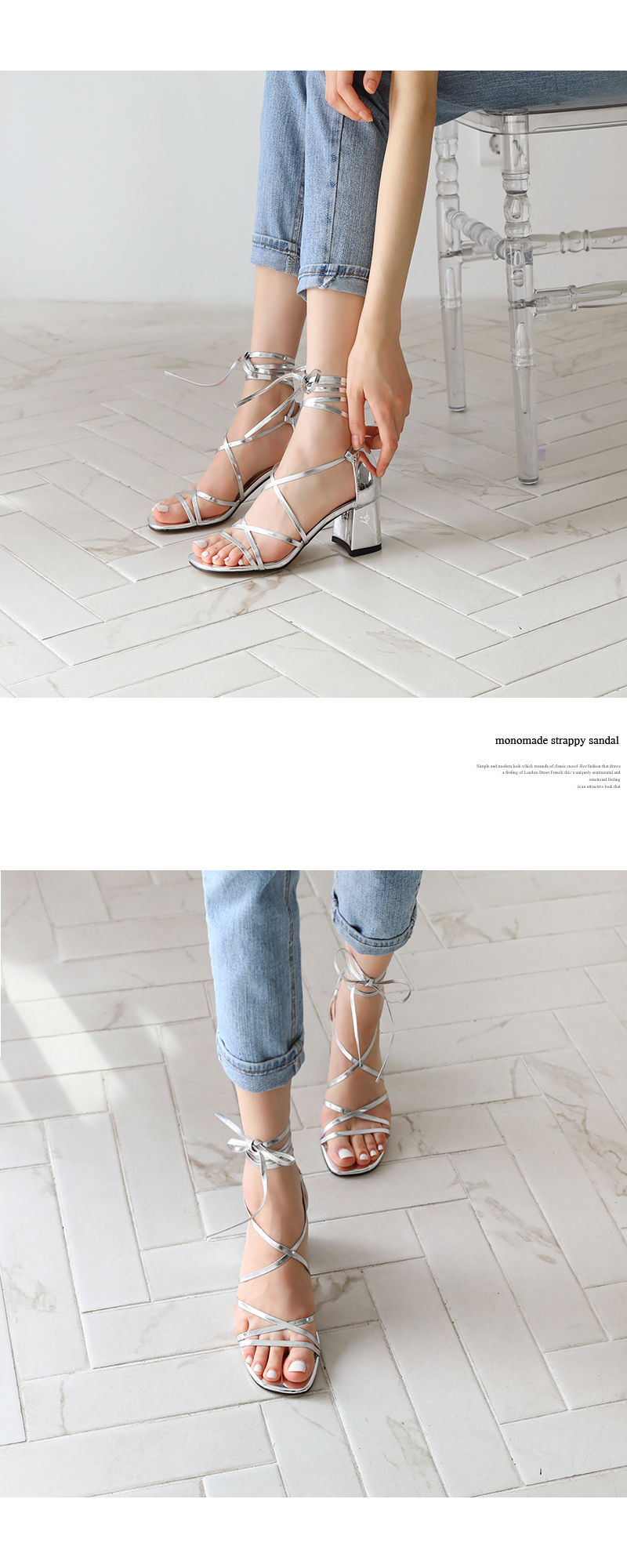 여리여리한 핏의 종결자라고 할 수 있는 슬림한 스트래피 샌들입니다.