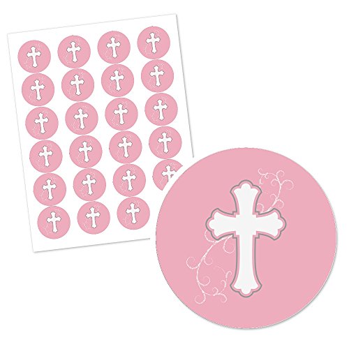 Little Miracle Girl Pink & Gray Cross - Cupcake Picks with Stickers - Baptism Cupcake Toppers - 12 Count