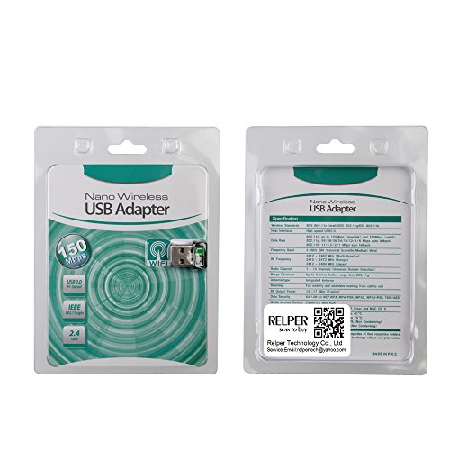 -. Binding : Electronics -. Brand : RELPER -. EAN : 0711463903523 -. Feature : Speedy wireless transmission ideal for video streaming or internet calling / Get connected to the internet instantly with easy setup utility / Seamlessly compatible with 802.11b/g/n products / Sleek miniature design that once pled into laptop it can be left in USB port / Supports Windows XP, Vista, Windows 7, Windows 8.1 -. Label : RELPER -. Manufacturer : RELPER -. Model : RLP-1511N -. MPN : RLP-1511N -. OperatingSystem : Linux -. PackageQuantity : 1 -. PartNumber : RLP-1511N -. ProductGroup : PC Accessory -. ProductTypeName : NETWORKING_DEVICE -. Publisher : RELPER -. Studio : RELPER -. Title : RELPER mini Wireless N Nano USB Adapter, 150Mbps, Miniature Design, Plug in and Forget, Support Windows XP/Vista/7/8 -. UPC : 711463903523