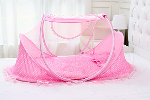 -. Feature : 1.SINOTOP baby mosquito bed including?mattress, pillow and mosquito net. It is better for 0-18 month baby. / 2.It could keep away you baby from mosquito, flies and insects, giving your baby a safe and quiet place to sleeping. / 3.It is Soft, comfortable and can prevent baby dropping down the floor, it also can prevent your baby from dust. Perfect for outdoors, it also can use for indoors. / 4.The Material is Breathable mesh and Cotton which provides a virus free environment while keeps the air flowing and your baby dry. / 5.This is a great tool for travel, keep your baby comfortable and safe.