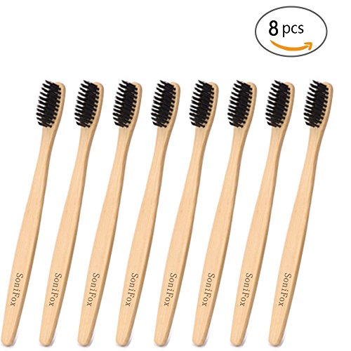-. Title : Bamboo Toothbrush Natural Wooden ECO Friendly Toothbrush Made with Bamboo Charcoal Infused Soft Bristles 4 Pcs