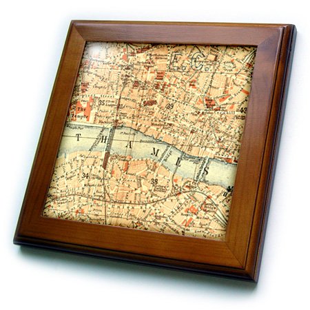 3dRose ft_112939_1 Vintage Map of London Uk Section with Thames River-Retro Cream Brown Orange-Geography Travel-Framed Tile, 8 by 8-Inch