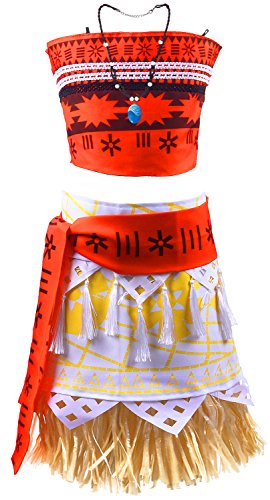 -. Title : Wocau Girls Moana Princess Adventure Costume Necklace Cosplay Outfit Dress Up