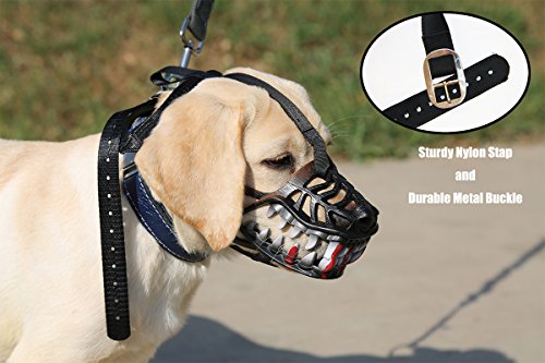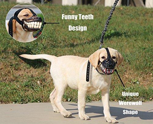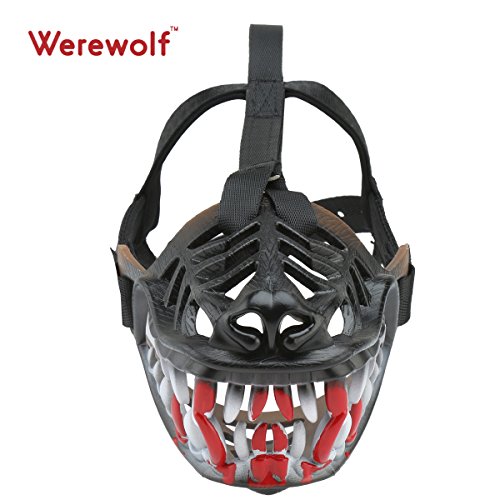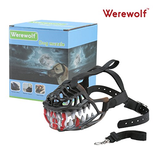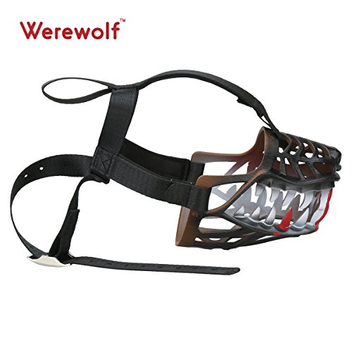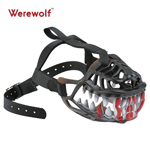 -. Title : Dog Muzzle WEREWOLF Unique Design with Adjustable Metal Buckle and Unti-biting & Chewing for Small Medium and Large Dogs-Smile & Sharp