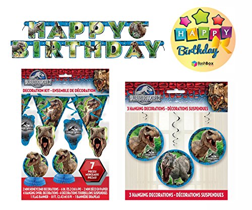 -. Title : BashBox Jurassic World Birthday Party Supplies Decor Pack Including 7 Piece Room Decorating Kit, Hanging Swirl Decorations and Jointed Banner