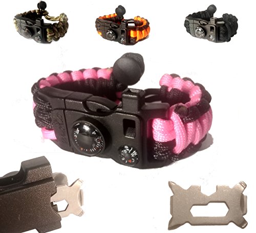 Paracord Bracelet - Survival Bracelet - Men Women Kid Girl - Adjustable - MINI MULTI TOOL CARD - Scrapper - Whistle - Compass - Flint Fire Starter - Fahrenheit Thermometer - Hiking Camping