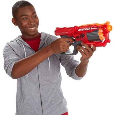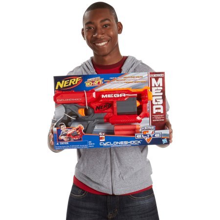 -. Binding : Toy -. Brand : N-Strike Elite Mega CycloneShock Blaster -. Color : Multicolor -. EAN : 4106289671873 -. Feature : CycloneShock blaster fires farther than ever / Mega whistler darts fly 90' and scream as they fly / Nerf Elite blaster has 6-dart capacity / Rotating drum lets you fire without reloading / WARNING: CHOKING HAZARD, small parts will be generated, not for children under 3 years -. IsAdultProduct : 0 -. ItemPartNumber : A9249 -. Label : Nerf -. Manufacturer : Nerf -. MPN : A9249 -. PartNumber : A9249 -. ProductGroup : Toy -. ProductTypeName : TOYS_AND_GAMES -. Publisher : Nerf -. Size : 3.50 x 15.98 x 10.00 Inches -. Studio : Nerf -. Title : Nerf N-Strike Elite Mega CycloneShock Blaster fires farther than ever