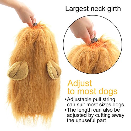 -. Feature : MATERIAL - Made of Smooth soft, durable and washable material, simply wash with warm water and mild soap then air dry / SIZE - Fits most average sized cats and small dogs, fit your cat's neck circumference from 23.6" to 31" (60cm to 80cm) / OCCASION - Costume designed for your pets. Perfect for holidays, parties or festivals£¬dog shows, local carnivals or cosplay parties, with this dog lion wig, your pet dog will always be set to be the eye-catcher of the event / EASY TO WEAR AND QUICK BUTTON FIXED - First put it on your pooch head, then adjust the wide according to neck, then there is 10MM wide drawstring to tighten it around your poochies head then button fixed, finally poofed lion mane hair up with a brush and hairspray. Like this,the lion mane will not easy to slip off and also looks like a real lion. / A GREAT CHRISTMAS GIFT - If you're wondering what you can get your beloved pet dog for this Holiday Season, this is where your search ends - Wait no longer, click 'Add to Cart' to order today