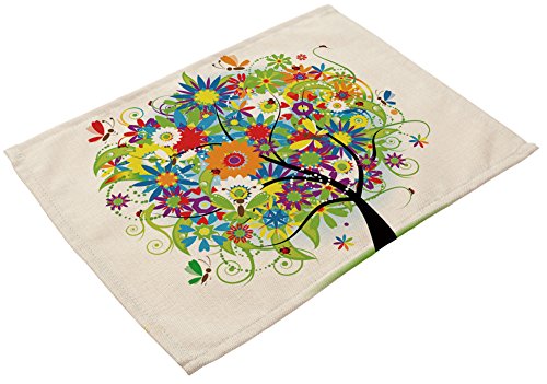 -. Title : YJ Bear Plant P.R.Int Pattern Cotton Linen Placemats for Kitchen Washable Table Mats Non-slip Heat Insulation Dining Table Mats for Teacups Table Runner 16.5" X 12.6"