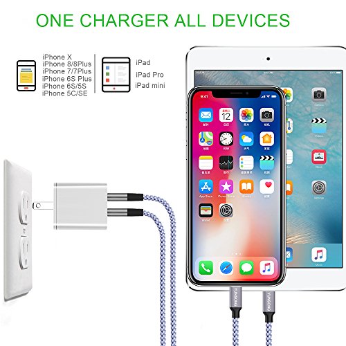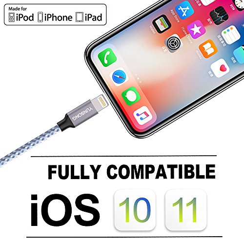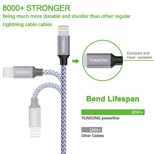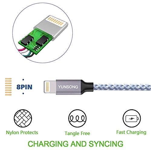 Studio : YUNSONG Publisher : YUNSONG Binding : Wireless Phone Accessory Product Description Brand: YUNSONG Cover Material: Heat-insulation and Flame-retardant PVC Materials Charger Current: 5V/ 4.2A (1-port each 2.1A max) Cable Current: Charging 2.1A, 480 mb/s transferring speed A Charger You Can Count On: YUNSONG Dual Port 5V 4.2A 21W (each 2.1A max) 2 USB Charger From YUNSONG, Leading USB Charging Brand Faster and safer charging with our advanced technology Fast Charging Technology Exclusive to YUNSONG Smart Technology to ensure the fastest possible charge speed Ultra Powerful 2 ports pump out 21 watts of power, Safety System Surge protection, Short circuit prevention, temperature control and more keep you and your devices safe. A Cable You Can Count On: The tangle-free nylon braided cable is more durable, more flexible and sturdier than the standard cables. We bent the aluminum head of YUNSONG lightning cable over 8000 times and saw no damage or change in performance. Heat- resistant connectors ensure complete safety and reliability. Sync and fast Charge YUNSONG Lightning cable Enjoy super-fast charging, sync and data transfer delivered . (Data transfer rates up to 480 Mbps) Small head works with most cases, This narrow Lightning Adapter is small enough to fit most cases but strong enough to withstand repeated unplugging and storage. Compatibility - iPhone X /8 / 8 Plus / 6s / 6s Plus / 6 / 6 Plus / 5 / 5S / 5C - iPad Pro, iPad Air, iPad Air 2, iPad mini, iPad mini 2, iPad mini 3, iPad mini 4, iPad 4 - iPod Touch 5th Gen / iPod Nano 7th Gen