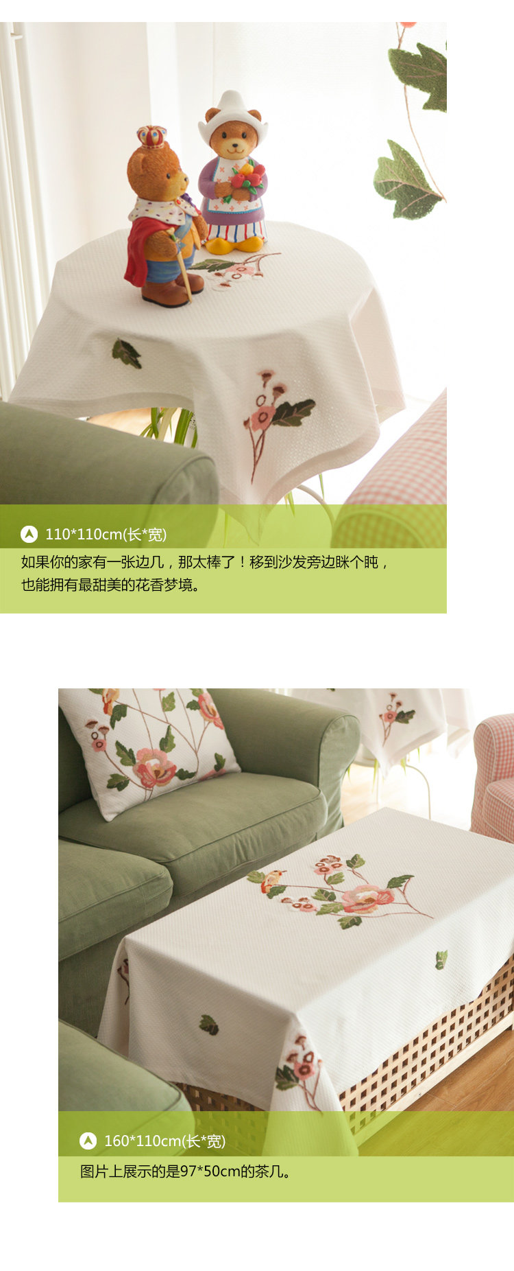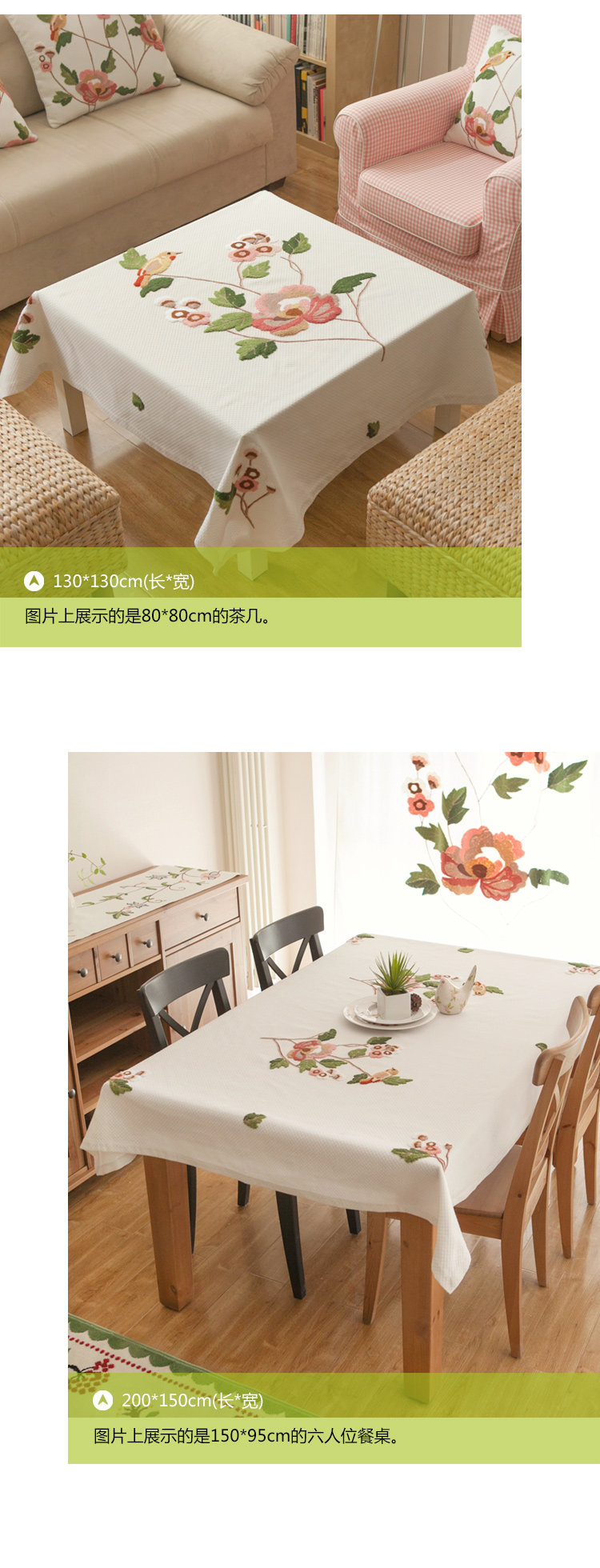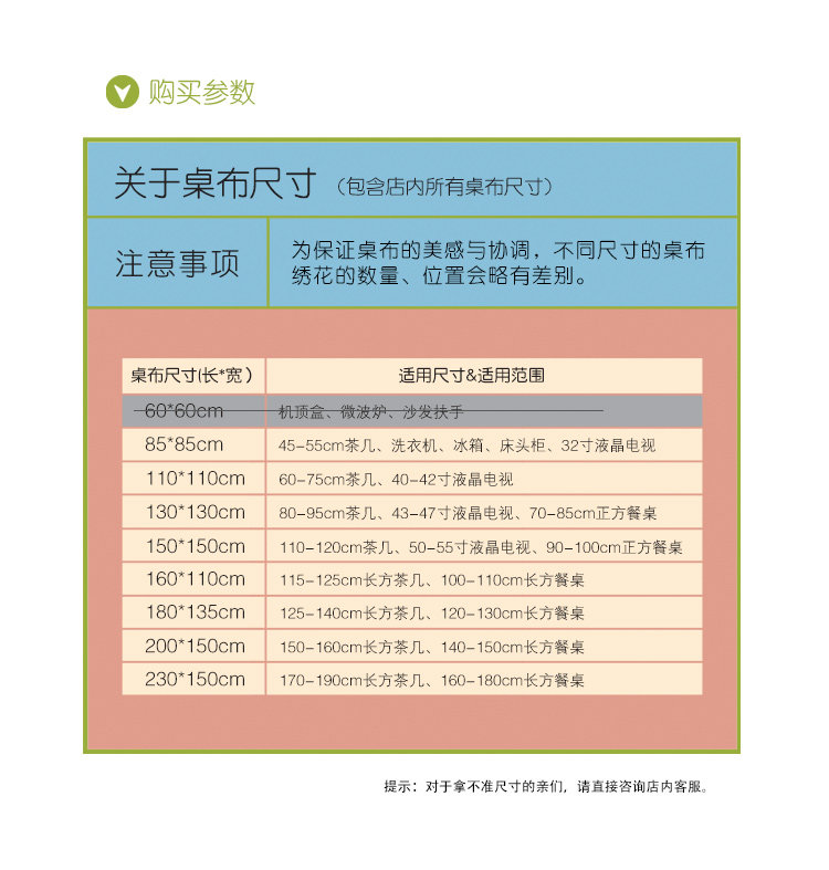 以下台布仅展示了部分尺寸,以供参考。各尺寸花型排列稍有不同。